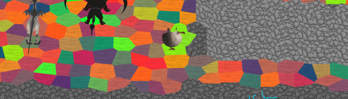 To generate the voronoi partitions, I’ve somewhat modified existing algorithms. This allows me to generate walls and guarantee there’s no gaps in them as well as store the connection between tiles for more efficient path finding.