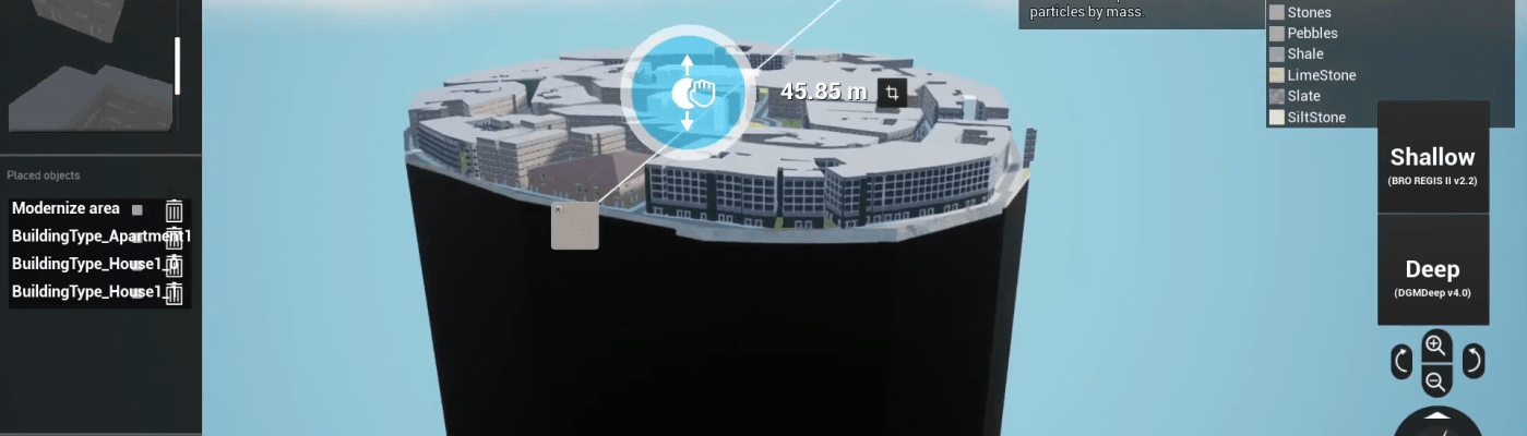 This tool was creates as part of the Saxion Smart Cities and Subsoil research groups. The purpose of this tool is for urban planners to create a visualization of both small and large scale city development plans. These visualizations should be interactive and easily understandable by the general public.